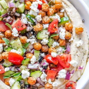 We’ve got you roasting fresh garlic in the oven, making homemade hummus, cooking crispy chickpeas on the stovetop, and throwing together a Greek-style chopped ‘salad’.