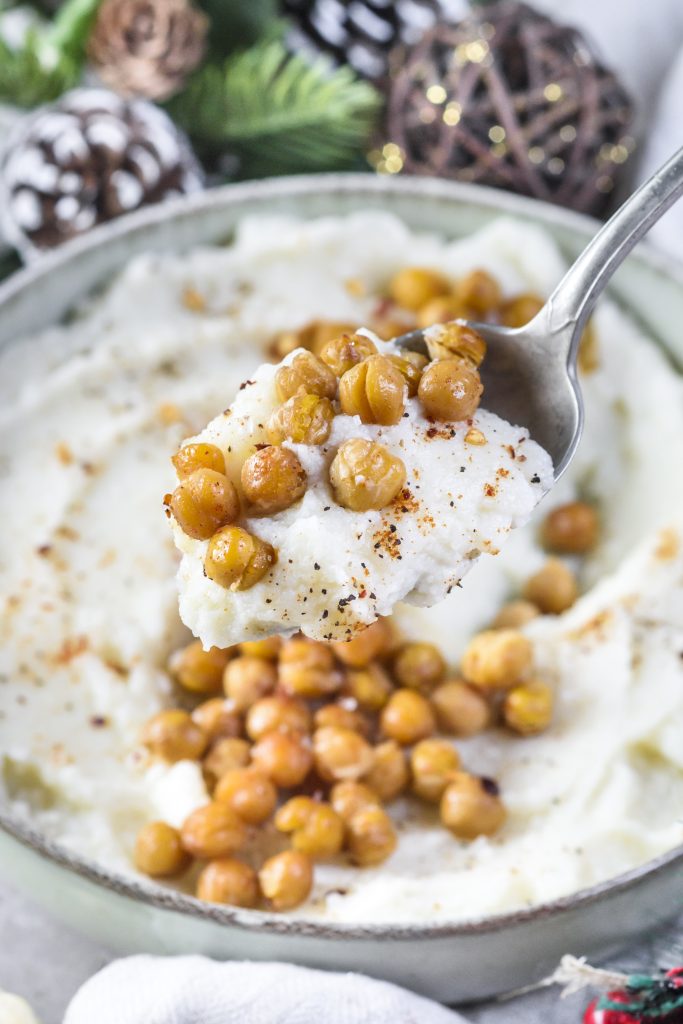 Mashed Cauliflower with Garlic Roasted Chickpeas