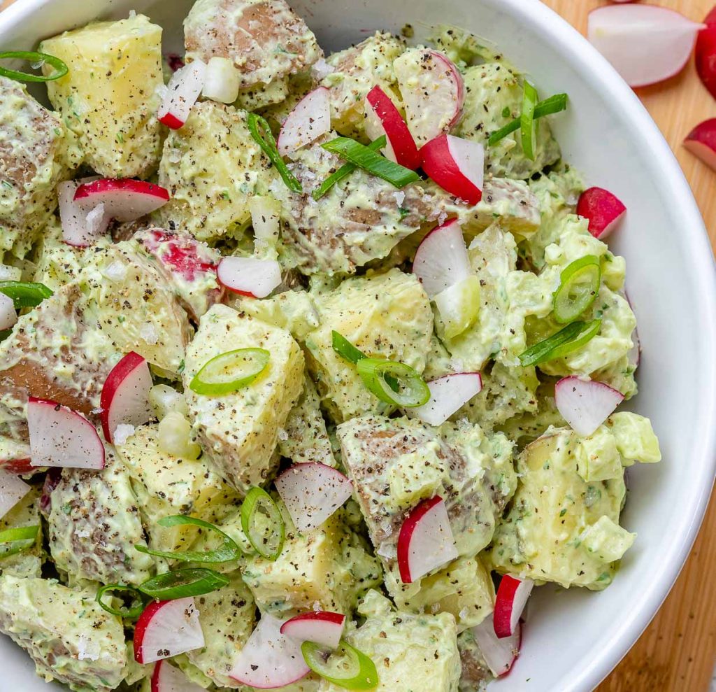 Our Creamy Potato Salad with Greek yogurt and ripe avocado, skips out on the mayo while keeping that creamy fresh flavor!