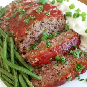 Meatloaf, Cauliflower Mashed “Potatoes” & Roasted Green Beans