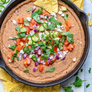 Our Mexican Bean Dip is a QUICK recipe, that REALLY delivers on flavor, thanks to the mixture of dark and light beans, combined with just the right amount of seasonings and spices!