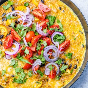 Add whatever veggies you have on hand! Diced peppers would be awesome too! I’d even top this with freshly chopped tomatoes, pico, or sliced avocado if I had it!