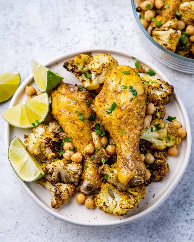 All these spices combined then roasted coating the cauliflower and chicken drumsticks make for an incredibly interesting, satisfying, and mouthwatering meal.
