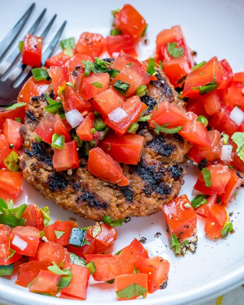 - Serve burgers hot and top them generously with pico de gallo.