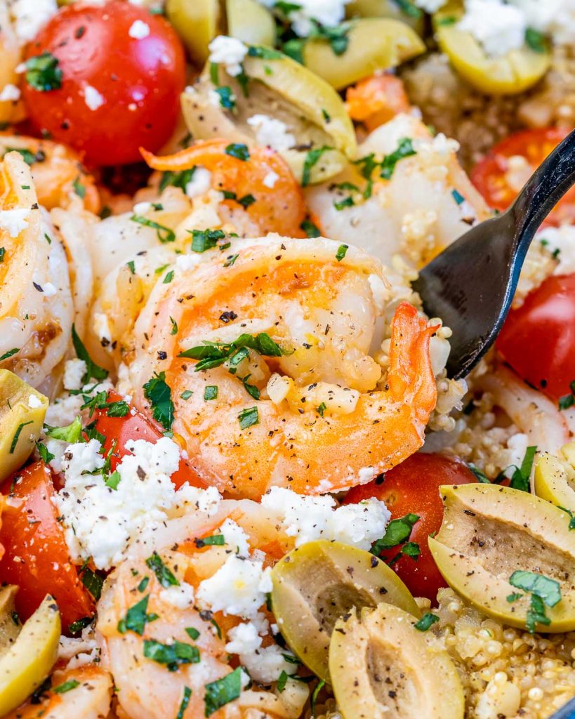 One-Pan Mediterranean Style Shrimp Quinoa Skillet
