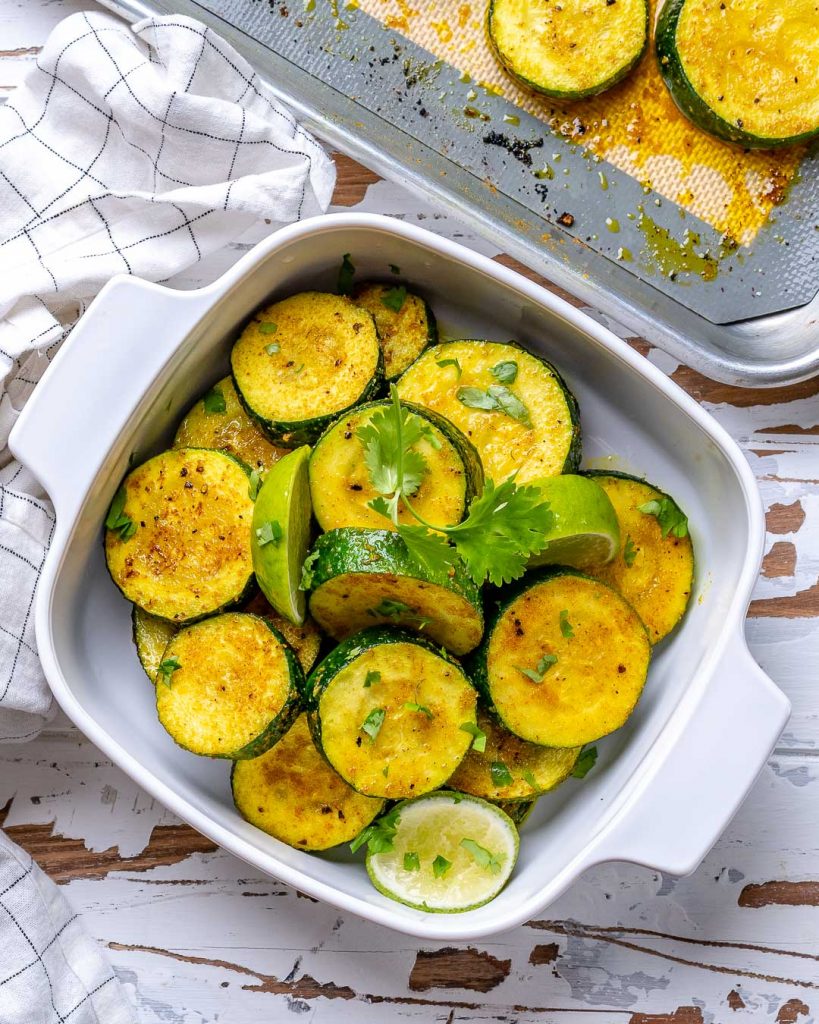 Preheat your oven to 400 degrees f. and line a large baking sheet with parchment paper, or a silicone mat. Carefully slice zucchini into 1/2 inch thick rounds.Place zucchini rounds in a big bowl, and sprinkle with spices. Drizzle everything with oil, then using your hands toss really well to get all slices evenly coated.