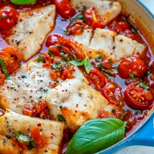 Our Pan-Seared Cod in Tomato White Wine Sauce is made using just ONE PAN on the stove top, yet the flavors are deep and complex. Your family will think you spent a whole lot more time preparing this restaurant-worthy meal!