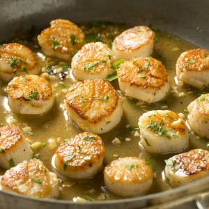 Buying scallops: I prefer “dry” scallops, which do not contain chemical additives and taste much better than “wet” scallops, in my opinion. “Dry” scallops appear ivory or pinkish. “Wet” scallops are bright white.
