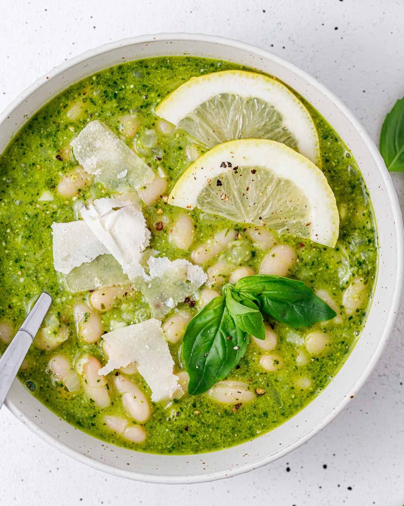 This soup is incredibly comforting throughout the colder winter months, yet bright and cheerful during the spring and summer, thanks to the addition of fresh pesto sauce.
