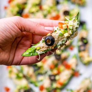 In a medium bowl, combine all the filling ingredients and stir well. Taste test and add more hot sauce or Greek yogurt to your desired taste and consistency.