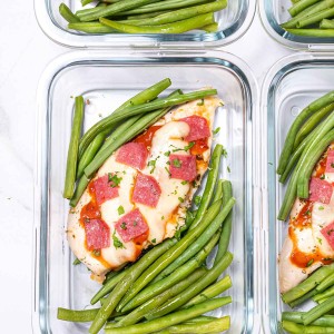 So, what I’m getting at is this Pizza Chicken Meal Prep with Green Beans checks our most important boxes while ALSO being SUPER DELICIOUS and having just enough “fun” involved (thanks to melty cheese and crisp pepperoni) to satisfy our taste buds fully as well. ✅