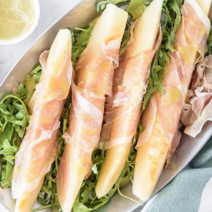 Prosciutto-Wrapped Summer Melon + Baby Arugula