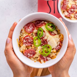 We’re talkin’ lean ground turkey or beef, loaded with sautéed veggies, marinara sauce, and melted mozzarella cheese – all in a convenient, oven-safe bowl. And the best part? You can customize your toppings to your own desire!
