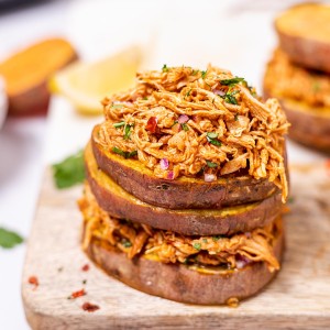 Add these saucy lil’, flavor-packed Pulled Chicken Sweet Potato Sliders to your menu this weekend! They are absolutely irresistible! Excellent game day party food, but equally great for family dinner or meal prep.
