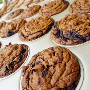 • Spray muffin tray or line with parchment liners.