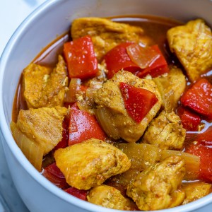 Remove bay leaves before serving. Enjoy your chicken curry over the top of cooked brown rice, or quinoa and with roasted veggies.