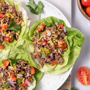 We have several Cheeseburger Salad Recipes on the website, and they sure are SUPER POPULAR recipes with our readers! I decided to create a lettuce wrap version that you eat with your hands instead of a fork.