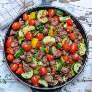 Okay, people…THIS SUPER QUICK Skillet Meal is EXACTLY what you’re going to want to make when all those ripe vegetables start showing up in our gardens and farmers markets!
