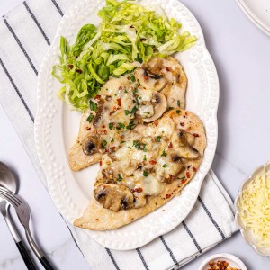 Saucy, ultra-flavorful Chicken Lombardy quickly baked in a rich mushroom marsala sauce and finished with melty cheese.
