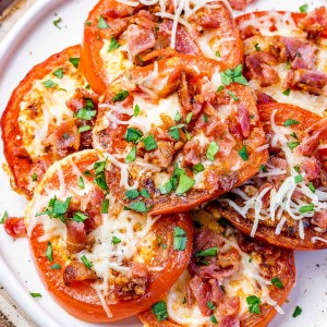 I enjoyed this one SO MUCH as I’ve always adored fresh tomatoes. Although this recipe makes two servings, I enjoyed the entire pan all to myself one afternoon recently. It’s just so good and completely satisfied my afternoon cravings!