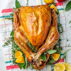 - 12-14 lbs fresh or frozen young turkey