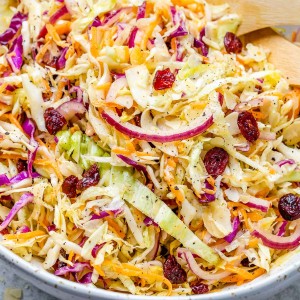 - Drizzle your slaw with the dressing and thoroughly toss to combine.