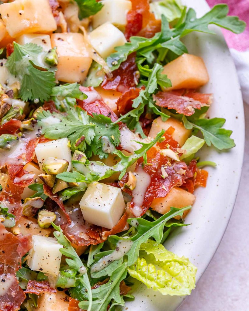 That’s why I’m excited to share this simple yet stunning Melon + Crispy Prosciutto Salad recipe with you!