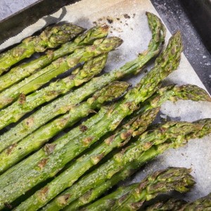- Arrange the asparagus onto a flat baking sheet in a single layer.