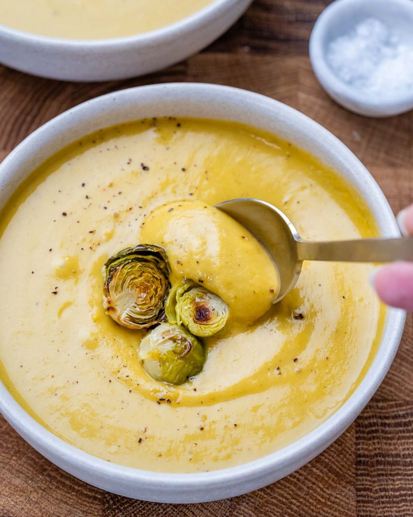 Cozy up with a bowl of creamy, cheesy, and oh-so-nourishing Roasted Brussels Sprouts Cheddar Soup!