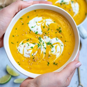 Simple enough for a quick weeknight meal **although** these flavors are complex and fancy enough that this carrot soup will also be coveted on your holiday dinner table.