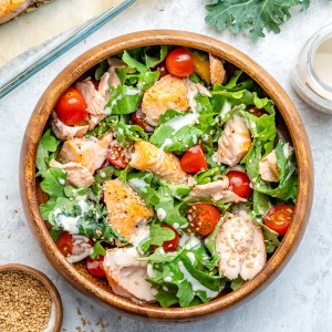 Salmon + Kale Salad with Creamy Tahini Dressing