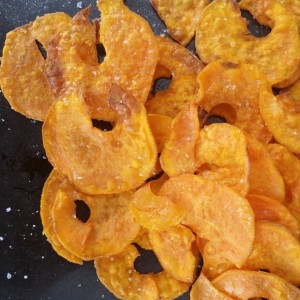 - Peel & slice 3 smaller sweet potatoes as thin as you possibility can. (Extremely thin)