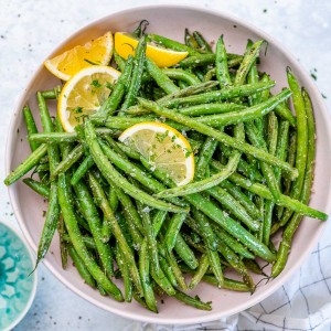 Add in the beans and sprinkle with your lemon pepper salt to taste. Toss well to get all the green beans evenly seasoned.