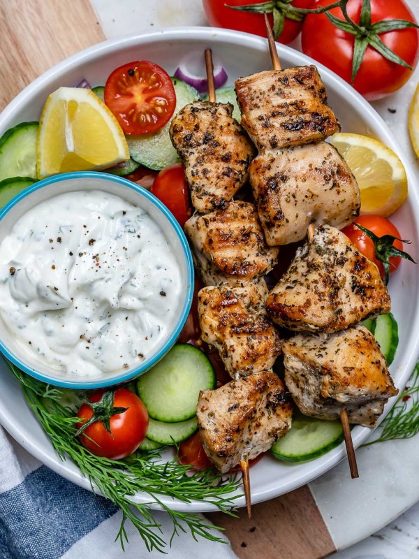 Grilled Chicken Skewers + Homemade Tzatziki are BBQ Perfection!