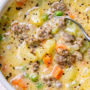 This creamy, comforting soup is a must-make on a chilly evening. With a rich and savory broth made with bone broth, ground meat, and Greek yogurt, it will be love from the first spoonful.