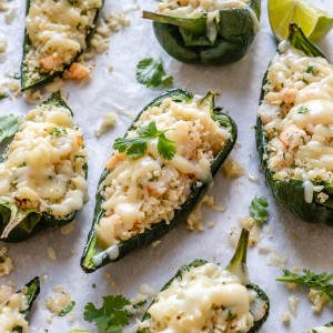 Shrimp + Cauliflower “Rice” Stuffed Poblanos