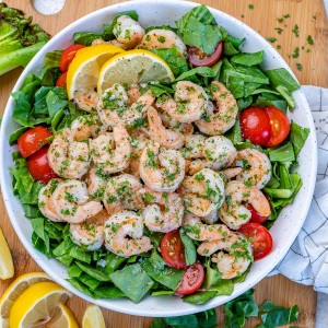 The crisp fresh Romaine, combined with the buttery garlic shrimp, a sprinkle of shredded Parm, then drizzled in a light burst of lemon…Light and Fresh, plus super satisfying!