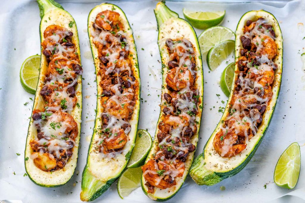 Shrimp Taco Zucchini Boats would also be fantastic finished on the grill rather than heating up your oven. Just be sure to cook your shrimp on the stovetop, then add your cooked shrimp mixture into the zucchini and throw them on your grill to heat through and melt the cheese.