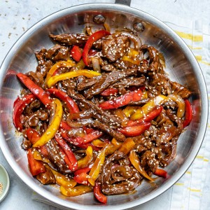 Return beef to the skillet, toss to coat well in the sauce and continue to cook for a minute or so until everything is combined and heated through nicely.