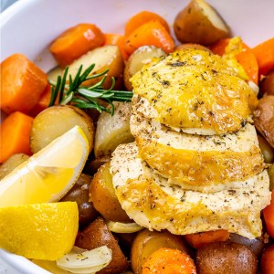 With a handful of basic ingredients + a few minutes of prep, your kitchen will smell phenomenal while your chicken is baking and you can sit back and relax!