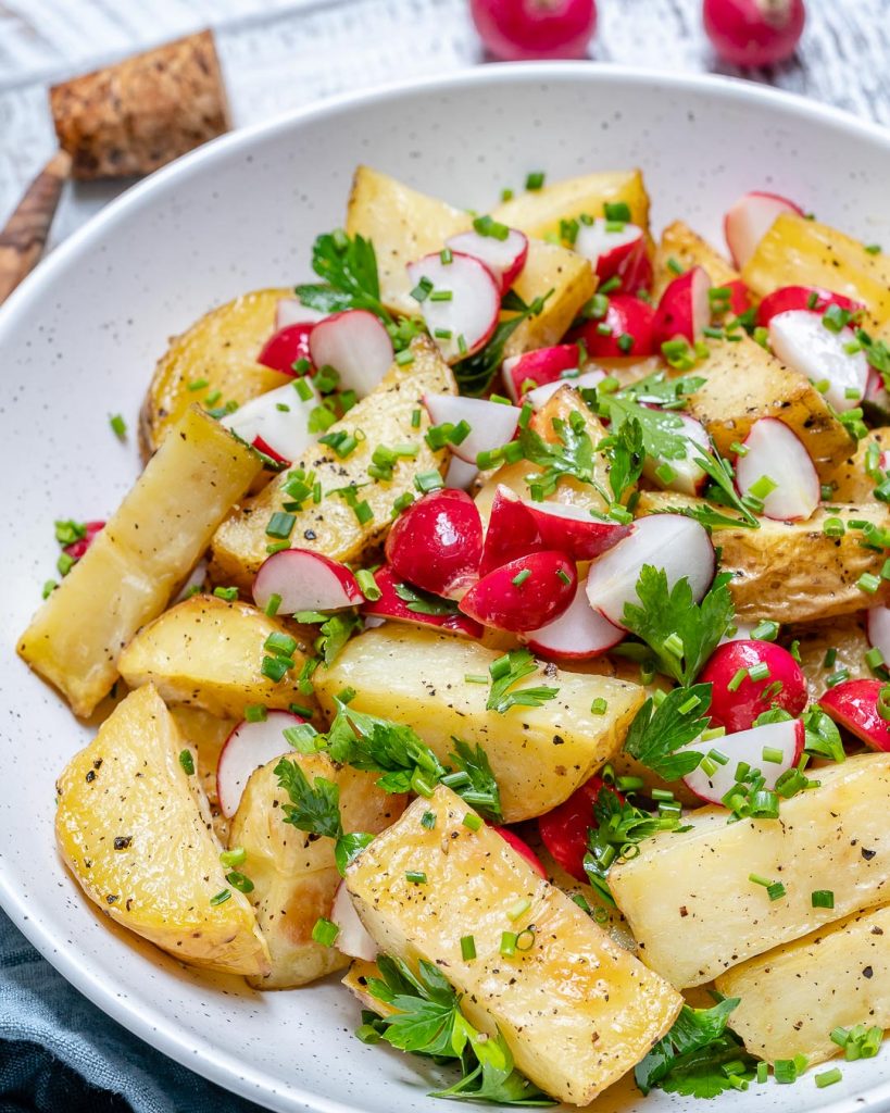 This roasted potato salad is SUPER tasty thanks to the fresh herbs…but it’s also as easy as it gets to prepare!