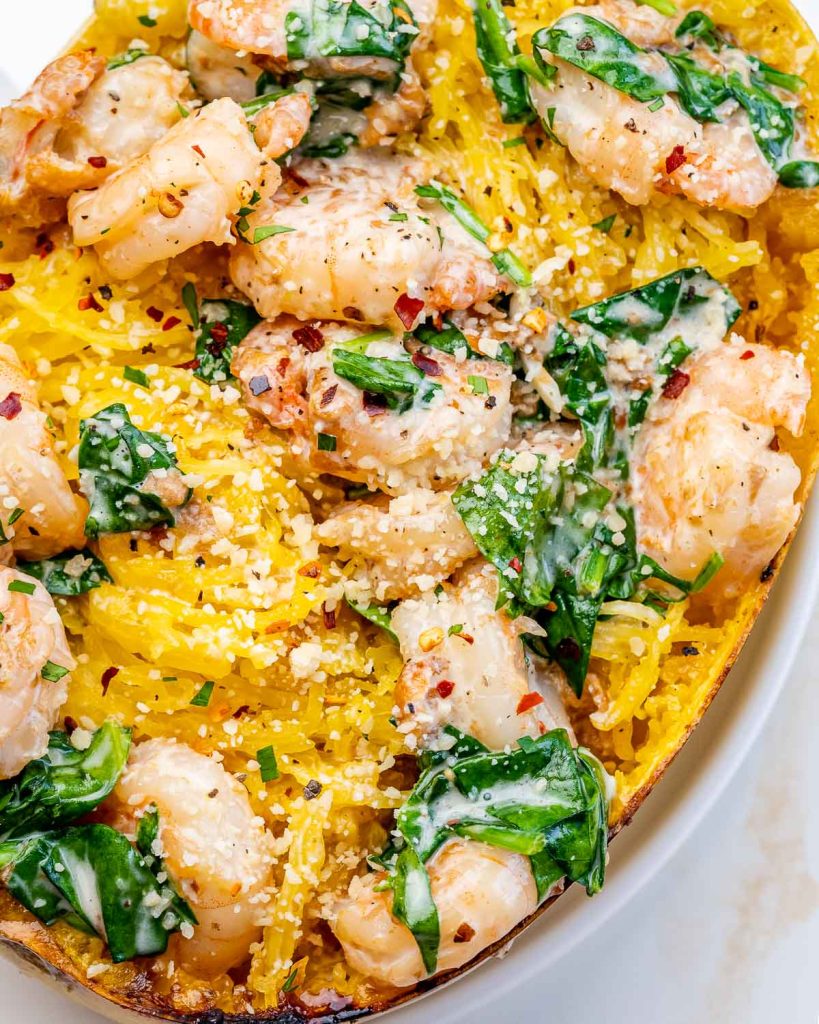 Spaghetti Squash Shrimp Alfredo