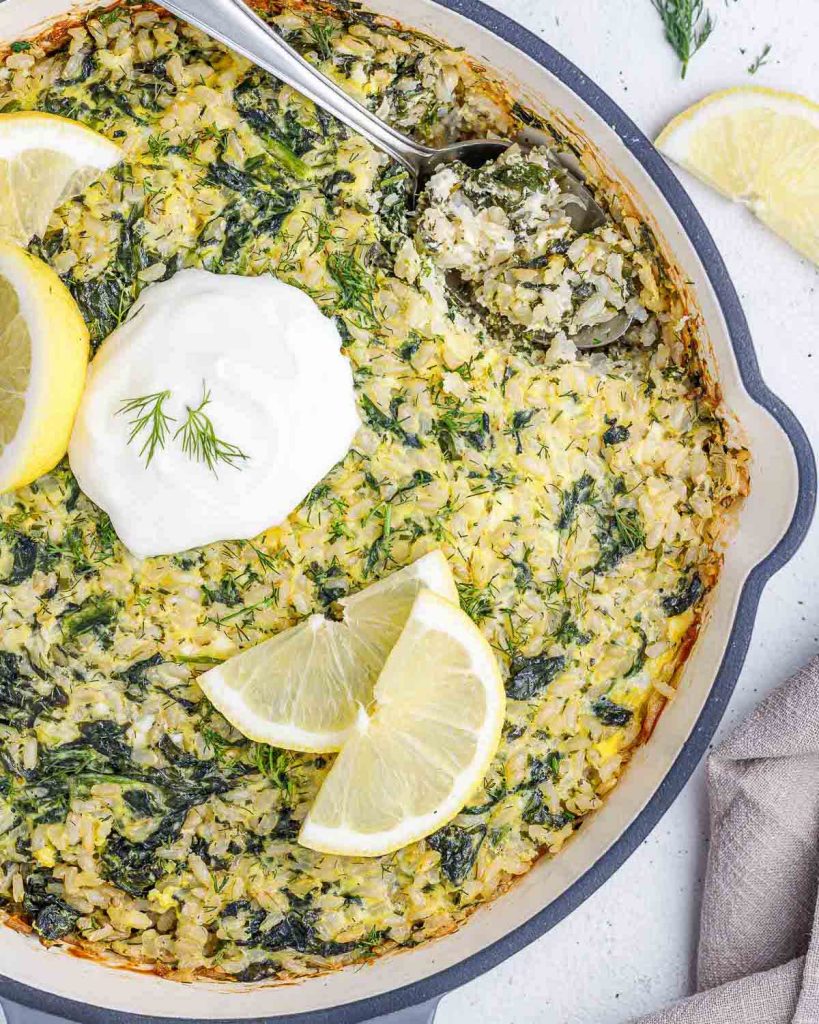 Make this Spinach, Feta, and Rice Casserole to serve alongside your dinner tonight, or make this for meal prep throughout the week as it heats up extremely well.