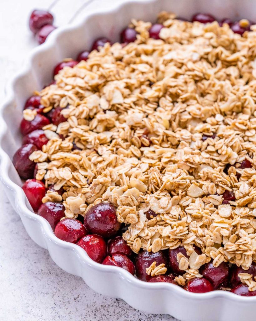 With a simple crumble topping made from rolled oats, almond flour, and sliced almonds, you’ll get a satisfying crunch that’s also gluten-free.