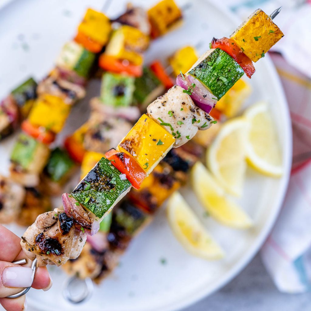 Summer Veggie + Marinated Chicken Kabobs