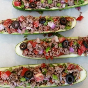 - 3 medium zucchini, cut in half lengthwise, most of flesh scooped out.