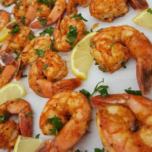 Lay shrimp on large flat sheet pan (I used parchment for easy cleanup)