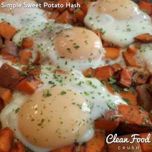 I used 3 medium sweet potatoes, diced into even 1 inch cubes.