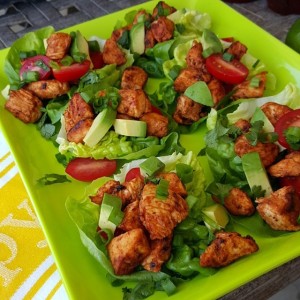 Place in medium glass bowl (cover), or gallon ziploc. Add diced chicken tenders.