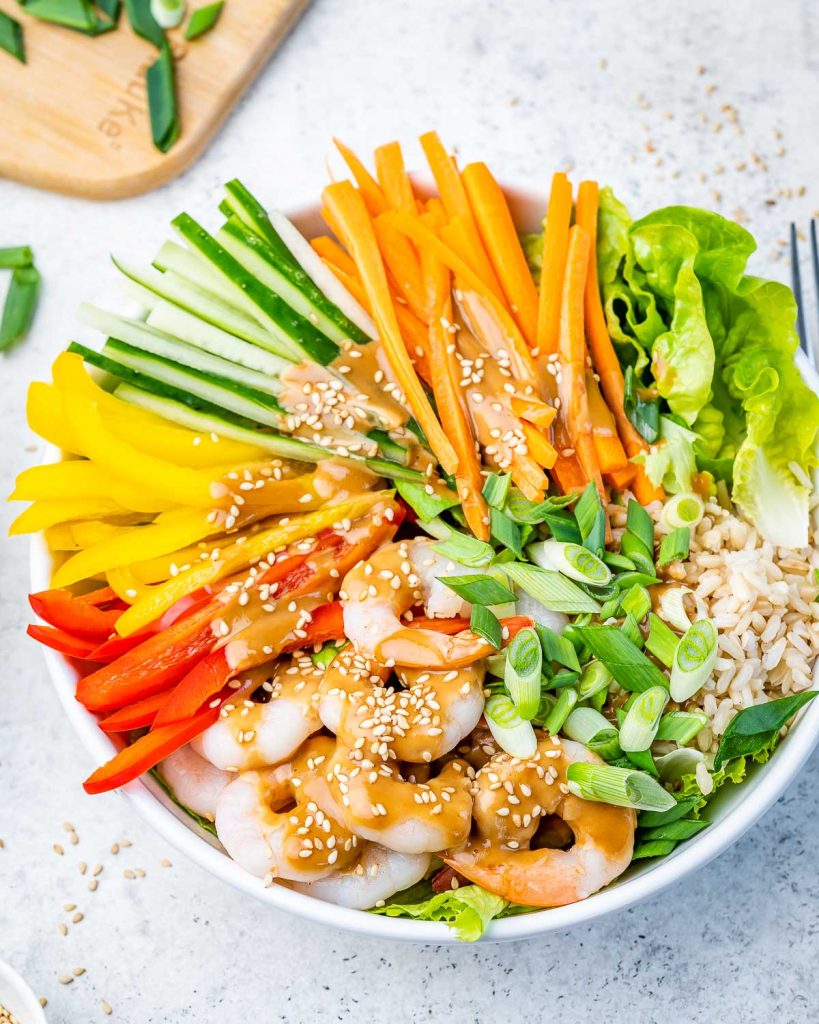 These Spring Roll Bowls are great if you have pre-cooked shrimp in your fridge or freezer because there are those days when it’s just way too hot to heat up the kitchen to cook anything!